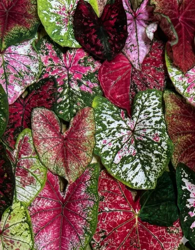 O Caládio Mix Olympikus é a escolha perfeita para quem deseja transformar o jardim ou o interior da casa em um verdadeiro festival de cores. Conhecido por suas folhas em formato de coração e padrões que misturam tons de branco, rosa, vermelho e verde, este "mix" traz uma diversidade encantadora onde cada brotação é uma surpresa visual. O Tamanho T refere-se a bulbos selecionados e vigorosos, garantindo uma reserva de energia ideal para que a planta desperte com força total, preenchendo vasos e canteiros com sua folhagem exuberante e tropical.