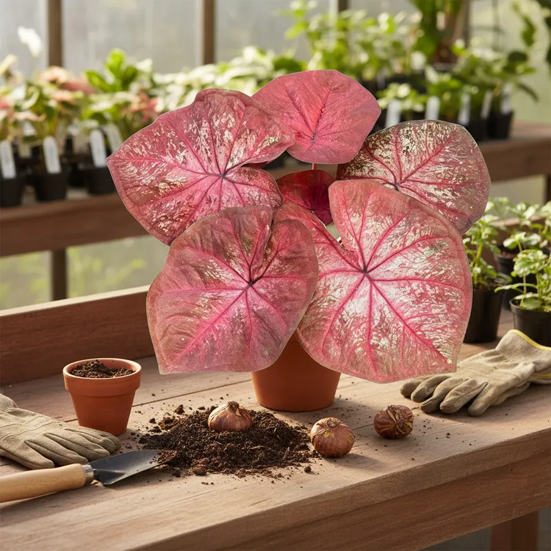 Plantio e Substrato: Para que o bulbo do seu Caládio Thai Dynasty brote com vigor e produza folhas grandes, ele precisa de um solo rico em matéria orgânica e com excelente capacidade de drenagem. Recomendamos o uso do nosso