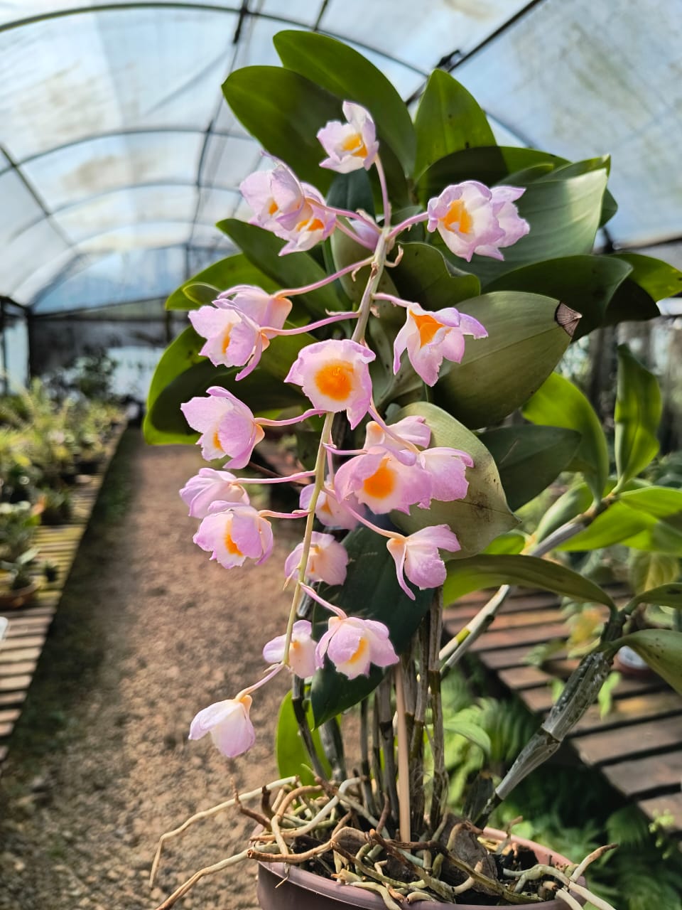 O Dendrobium Rosy Cluster é uma orquídea delicada e encantadora, conhecida por suas inflorescências abundantes de flores rosadas que se agrupam em pequenos cachos. As flores possuem um tom suave de rosa, com pétalas e sépalas simétricas, criando uma estética harmoniosa e elegante. Suas folhas são verdes e lanceoladas, oferecendo um contraste agradável com as flores. Esta orquídea é ideal para quem deseja adicionar um toque de beleza sutil e refinada ao seu ambiente.