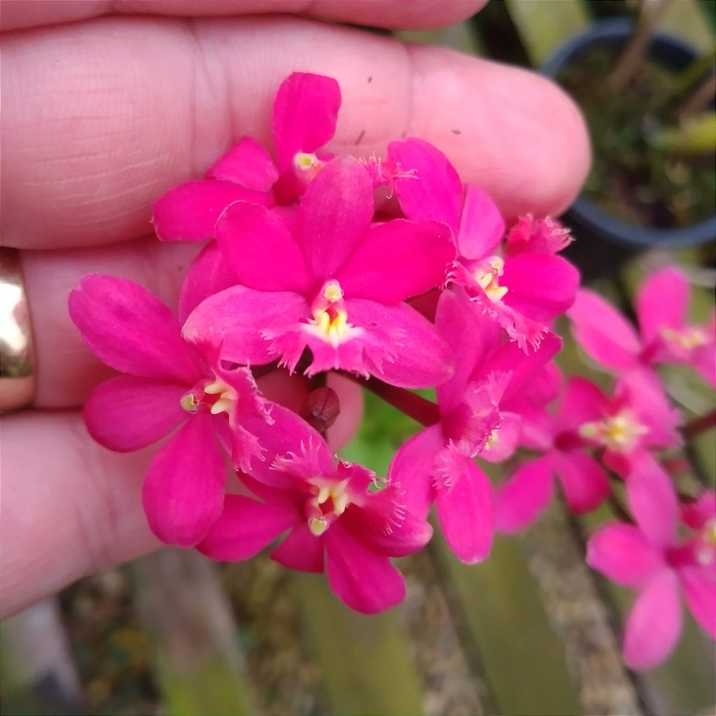 O Epidendrum Pink é uma orquídea epífita que se destaca por suas delicadas flores de cor pink, que florescem em hastes longas e eretas. Suas folhas são lanceoladas, de verde intenso, e contrastam lindamente com as flores, criando uma exibição graciosa e elegante. Esta espécie é conhecida pela sua resiliência e por florescer várias vezes ao ano, trazendo um toque de cor e sofisticação a qualquer ambiente.
