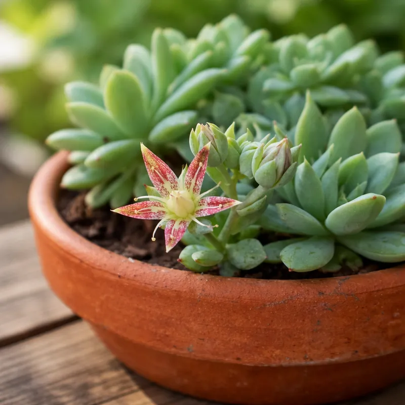 Luminosidade: Prefere luz indireta brilhante ou sol pleno, mas pode se adaptar a meia-sombra em climas mais quentes. Para manter o formato compacto e a coloração saudável das rosetas, é essencial que a planta receba pelo menos 4 a 6 horas de luz solar diária.