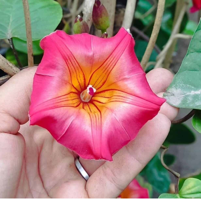 A Ipomeia Africana, cientificamente conhecida como Stictocardia macalusoi, é uma planta trepadeira perene notável por suas grandes e vibrantes flores em forma de trombeta, geralmente de cor vermelha ou rosa, e suas folhas largas e verdes em forma de coração. Ideal para cobrir treliças, cercas e pérgolas, esta planta adiciona um toque tropical exuberante ao jardim.