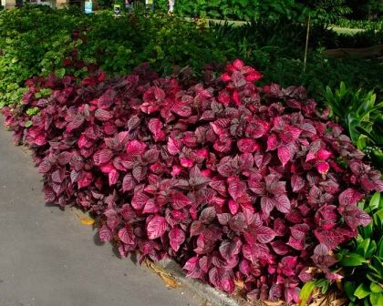 A Iresine Roxa (Iresine herbstii), também conhecida popularmente em algumas regiões como Coração Magoado ou Coração-de-Maria, é uma planta ornamental de folhagem herbácea e cores extremamente vibrantes. Nativa do Brasil, ela se destaca nos jardins e no paisagismo por suas folhas e caules de um tom vermelho-púrpura intenso ou arroxeado, que criam contrastes espetaculares com o verde de outras plantas. É uma planta de crescimento rápido e hábito arbustivo, muito utilizada para a formação de bordaduras, maciços coloridos ou como forração em áreas de sol pleno. Suas folhas têm um formato arredondado ou levemente em coração, com nervuras bem marcadas que podem apresentar tons mais claros, conferindo um aspecto visual único e sofisticado ao ambiente.