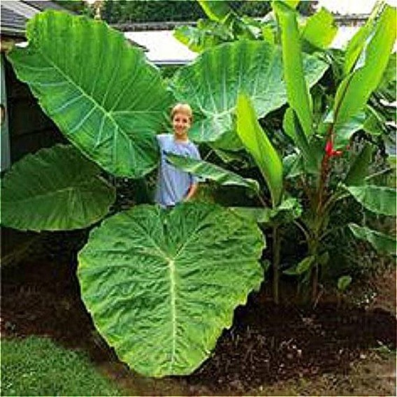 A Orelha-de-Elefante (Alocasia macrorrhiza) é uma planta tropical exuberante conhecida por suas folhas grandes, brilhantes e em formato de coração, que podem alcançar até 1 metro de comprimento. Originária do Sudeste Asiático, essa planta ornamental é amplamente cultivada em regiões tropicais e subtropicais devido à sua beleza marcante e fácil adaptação. Suas folhas verdes e lustrosas são sustentadas por longos pecíolos, conferindo um aspecto imponente e exótico a qualquer jardim ou espaço interno.