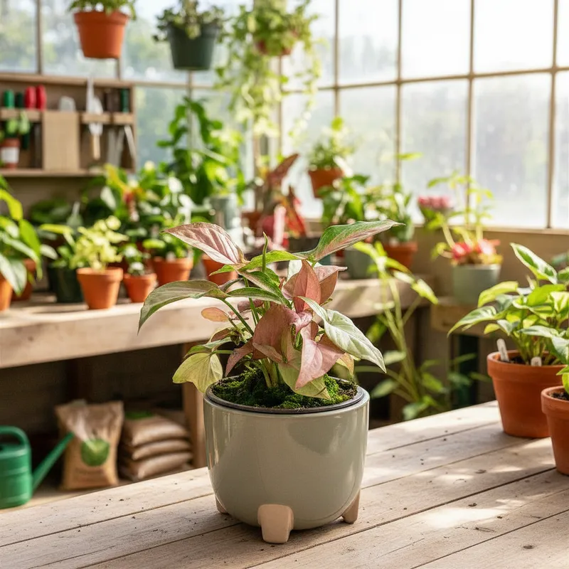 Substrato: O Singônio 'Regina Red' prefere um substrato rico em matéria orgânica, leve e com excelente drenagem. Uma mistura ideal inclui terra vegetal, composto orgânico, perlita e um pouco de areia ou casca de pinus triturada para garantir a aeração.