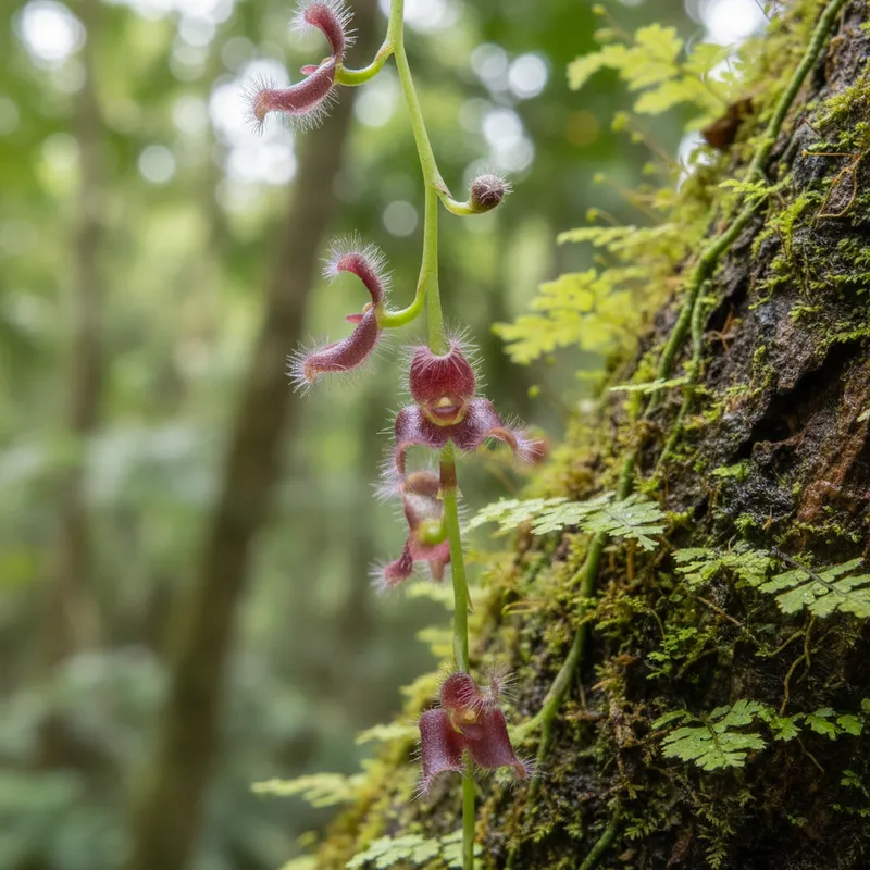 A Orquídea Stelis ciliaris é uma micro-orquídea fascinante, nativa de florestas tropicais e subtropicais que se estendem do México à América Central. Ela é uma espécie epífita de clima frio a ameno, que se destaca por sua floração delicada e intrigante. A planta é pequena, com folhas finas e longas. Suas flores são minúsculas, mas surgem em grande quantidade em hastes eretas e finas, formando uma inflorescência que pode chegar a 20 centímetros de comprimento. As flores, de cerca de 3 a 4 milímetros, são o verdadeiro espetáculo: elas têm três sépalas triangulares, com as margens cobertas por finíssimos pelos ou cílios (daí o nome ciliaris), que lhes dão um aspecto único e intrigante, como se fossem pequenas aranhas ou insetos. A Stelis ciliaris é uma planta ideal para colecionadores de micro-orquídeas, terrários e jardins de inverno, que buscam espécies com detalhes minuciosos e uma beleza singular.